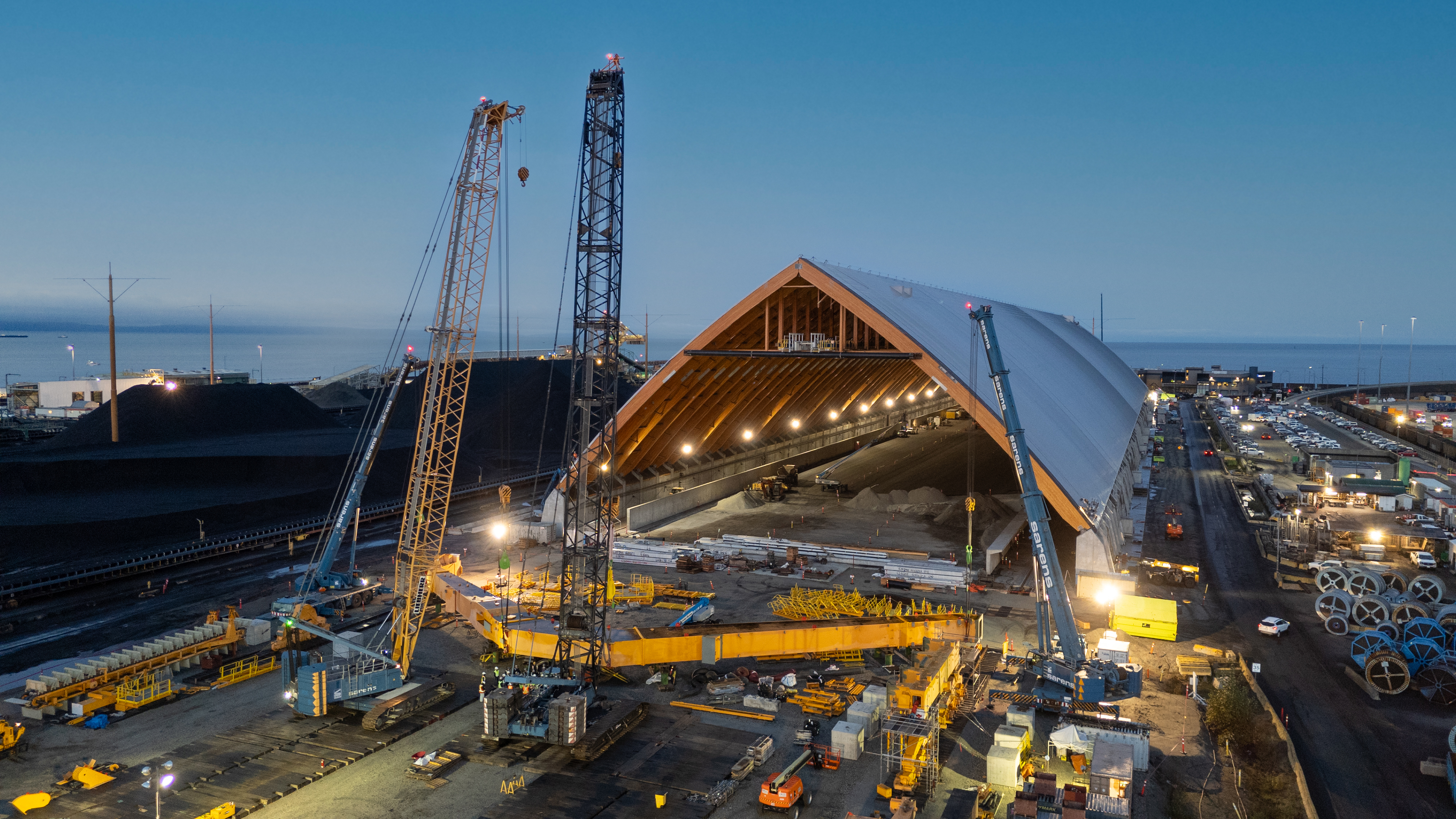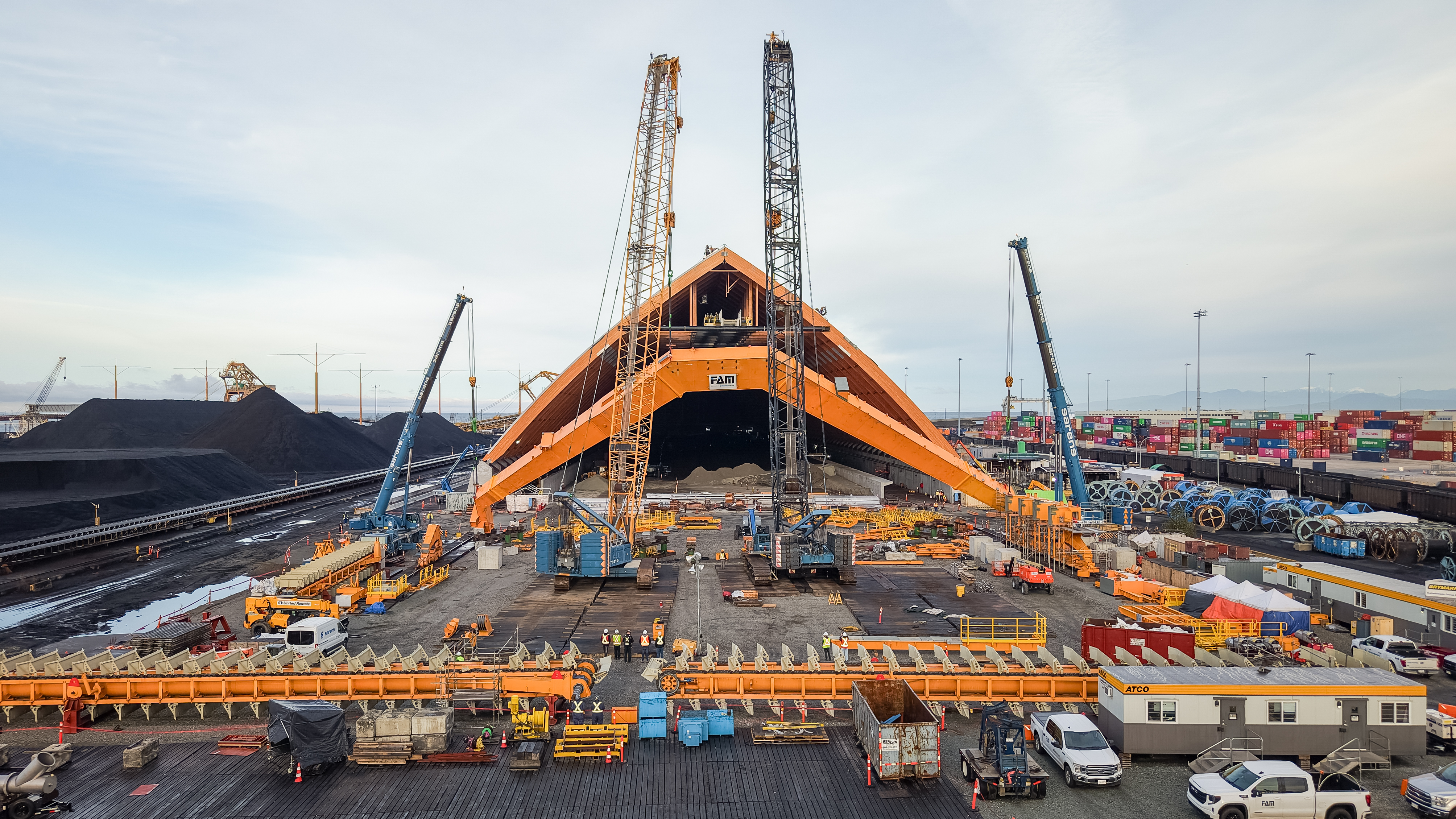 To complete the work, a high-capacity special rigging, supplied from the United States, was required to allow a controlled transition between lifting points and facilitate the safe 90-degree rotation of the structure during the maneuver. This is not the first time Sarens has participated in similar projects, highlighting the company’s recent involvement in the expansion of the potash storage building at Westshore Terminals in Delta, British Columbia, a strategic project to transform a coal terminal into a mixed-use facility that, once completed in 2026, will enable annual potash exports of 4.5 million tons. This expansion, with an investment of over USD 1 billion and derived from an agreement with BHP to provide port services to the Jansen mine in Saskatchewan, includes the construction of covered storage areas, wagon unloaders, and conveyor systems.